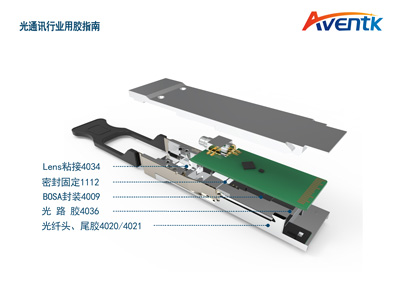 4. AVENTK 1017系列UV膠水:通過(guò)UV/可見(jiàn)光固化,對PVC、PET、PC等有極好的粘接力,可用于光模塊導線(xiàn)固定/焊點(diǎn)保護。