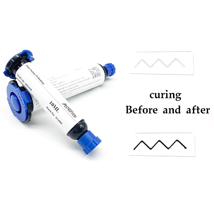 UV變色黑膠可解決。AVENTK UV變色黑膠含有AVENTK獨家Nyx技術(shù),Nyx技術(shù)是AVENTK獨有的UV光染色技術(shù),將UV光與膠水的染色完美的結合,在通過(guò)UV固化前是透明色,可良好吸收UV光,UV固化后成黑色(或其他顏色),在滿(mǎn)足了UV光固化高效率的同時(shí),又快速完成了膠水的染色。把AVENTK UV變色黑膠涂于OLED顯示屏周邊、屏幕與POL之間,可以大幅減少反光問(wèn)題。