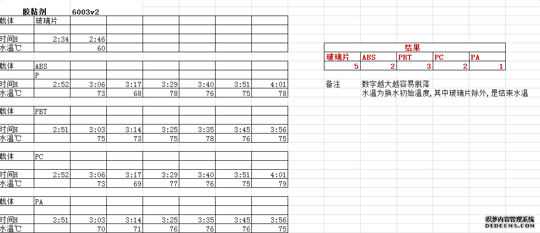 下圖為AVENTK做的測試方式:在70-80℃水浴中測試ABS,PBT,PC,PA材料做了測試。最終得出玻璃的情況。